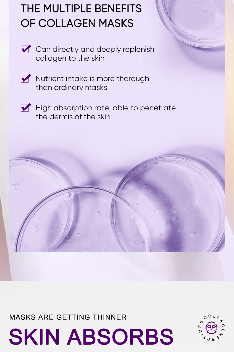 ★Collagen Anti Wrinkle Facial Mask Anti Aging Fade Fine Lines Firm Skin Moisturizing Brightening Smooth SkinCare Korean Cosmetics