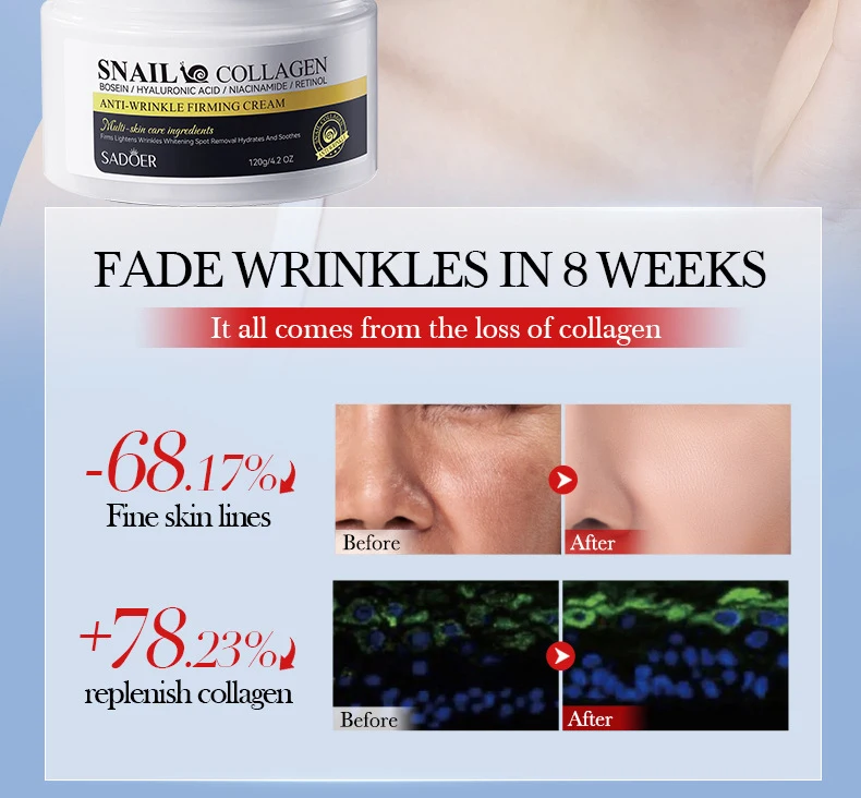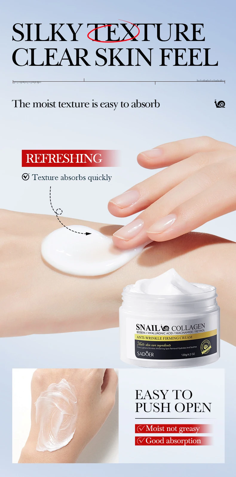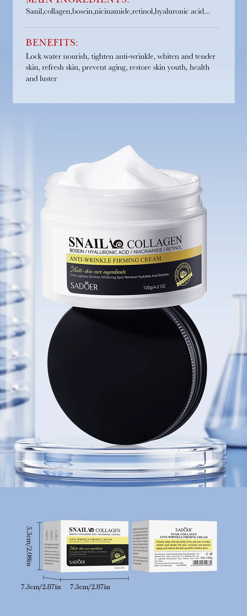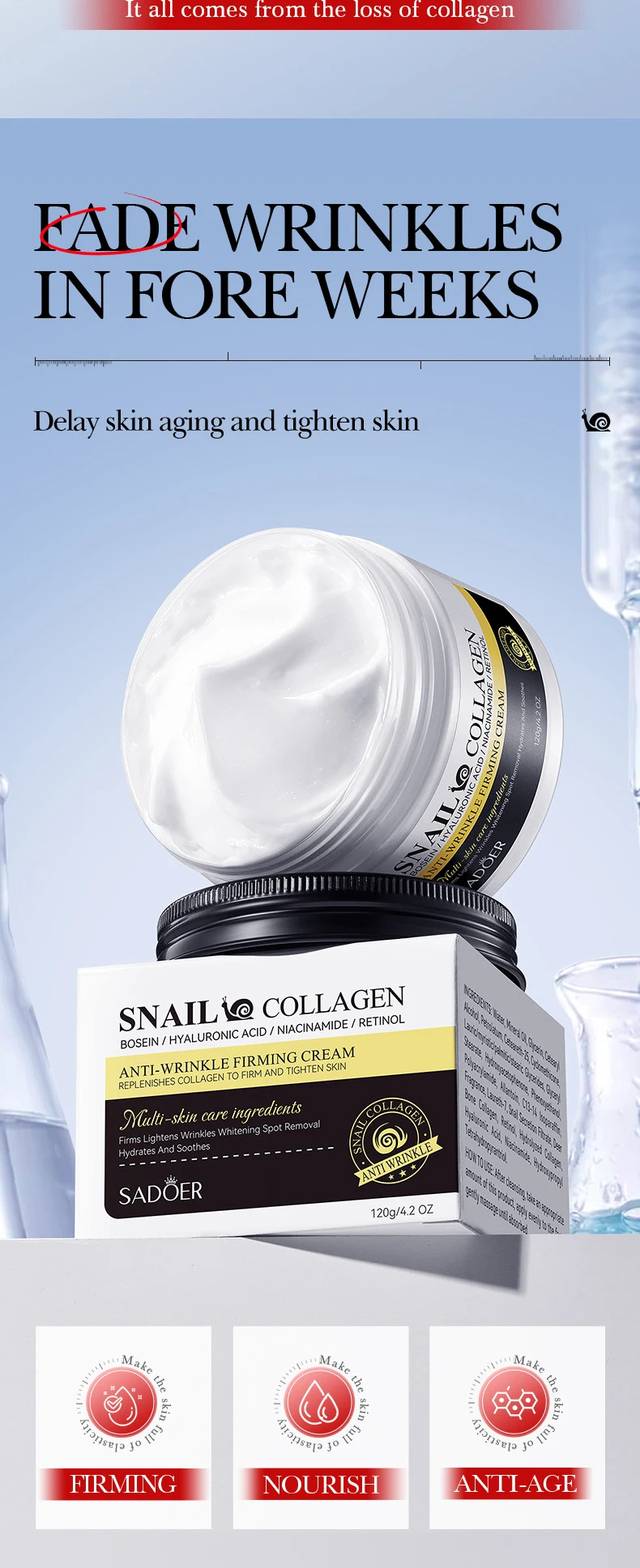 SADOER Snail Collagen Anti Wrinkles Face Cream Firming Moisturizing Skin Whitening Anti-aging Hydrating Facial Cream Skin Care